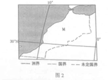 1996年我國與M國簽訂海洋漁業(yè)發(fā)展合作規(guī)劃,至2010年我國有20多家沿海漁業(yè)企業(yè)(總部設(shè)在國內(nèi))在M國從事漁業(yè)捕撈和漁業(yè)產(chǎn)品加工工,產(chǎn)品除滿足M國需求外,還遠銷其他國家,圖2示意M國的位置,把此完成6-8題