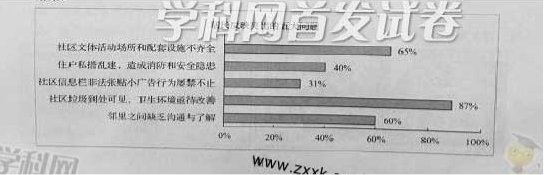 28.小明爸爸準(zhǔn)備參加社區(qū)居委會的競選,他在社區(qū)網(wǎng)站上查閱了圖7所示的問卷調(diào)查結(jié)果:根據(jù)調(diào)查結(jié)果,適合作為小明爸爸競選發(fā)言要點的是