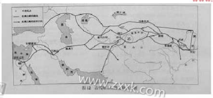 ?。?)閱讀上圖和上述材料,從中概括古代陸上絲綢之路的歷史特點(6分)。